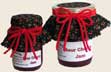 oz. sizes. All 9 oz. and 4 oz. jars are decorated with a colorful cloth
